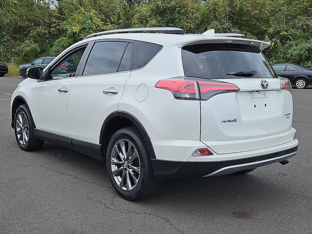 Clean CARFAX. White 2018 Toyota RAV4 Limited AWD 6-Speed Automatic 2.5L 4-Cylinder DOHC Dual VVT-i AWD, Ash w/SofTex Seat Trim, 4-Wheel Disc Brakes, 6 Speakers, ABS brakes, Active Cruise Control, Alloy wheels, AM/FM radio: SiriusXM, Compass, Electronic Stability Control, Front dual zone A/C, Heated door mirrors, Heated front seats, Heated Front Sport Seats, Illuminated entry, Low tire pressure warning, Memory seat, Power driver seat, Power Liftgate, Power moonroof, Remote keyless entry, Traction control.