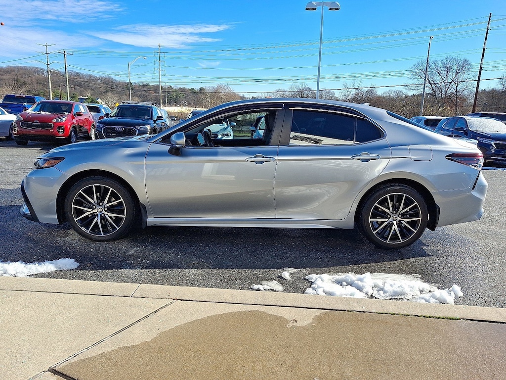 Priced below KBB Fair Purchase Price! CARFAX One-Owner. Celestial Silver 2022 Toyota Camry SE Black Leather.