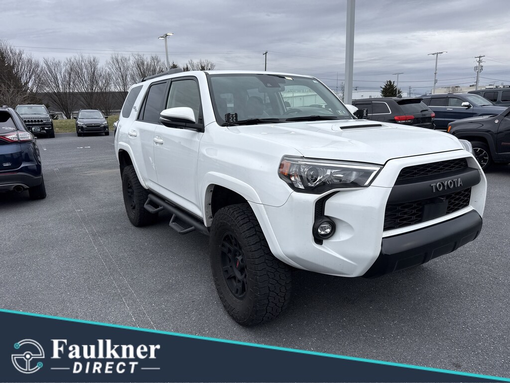 Recent Arrival! Clean CARFAX. Wind Chill Pearl This 4Runner TRD Off-Road Premium is nicely equipped with 4WD, Black/Graphite w/SofTex Seat Trim, AM/FM radio: SiriusXM, Apple CarPlay/Android Auto, Heated front seats, Heated steering wheel, Navigation System, 3.727 Axle Ratio, 4-Wheel Disc Brakes, 8 Speakers, ABS brakes, Air Conditioning, Alloy wheels, Anti-whiplash front head restraints, Auto High-beam Headlights, Auto-dimming Rear-View mirror, Black Roof Rails, Brake assist, Bumpers: body-color, Compass, Driver door bin, Driver vanity mirror, Dual front impact airbags, Dual front side impact airbags, Electronic Stability Control, Emergency communication system: Safety Connect (1-year trial), Exterior Parking Camera Rear, Front anti-roll bar, Front Bucket Seats, Front Center Armrest, Front fog lights, Front reading lights, Front wheel independent suspension, Garage Door Opener, Garage door transmitter: HomeLink, Heated door mirrors, Heated Front Bucket Seats, Heated Outside Rear-View Mirrors, Illuminated entry, Knee airbag, Leather Shift Knob, Low tire pressure warning, Occupant sensing airbag, Outside temperature display, Overhead airbag, Overhead console, Panic alarm, Passenger door bin, Passenger vanity mirror, Power door mirrors, Power driver seat, Power passenger seat, Power steering, Power windows, Radio: Premium Audio, Rear anti-roll bar, Rear seat center armrest, Rear window defroster, Rear window wiper, Remote keyless entry, Security system, SofTex Seat Trim, Speed control, Speed-sensing steering, Split folding rear seat, Spoiler, Steering wheel mounted audio controls, Tachometer, Telescoping steering wheel, Tilt steering wheel, Traction control, Trip computer, Turn signal indicator mirrors, Variably intermittent wipers, and Wheels: 17 Unique 7-Spoke Off-Road Alloy. 4WD, Black/Graphite w/SofTex Seat Trim, AM/FM radio: SiriusXM, Apple CarPlay/Android Auto, Heated front seats, Heated steering wheel, Navigation System.